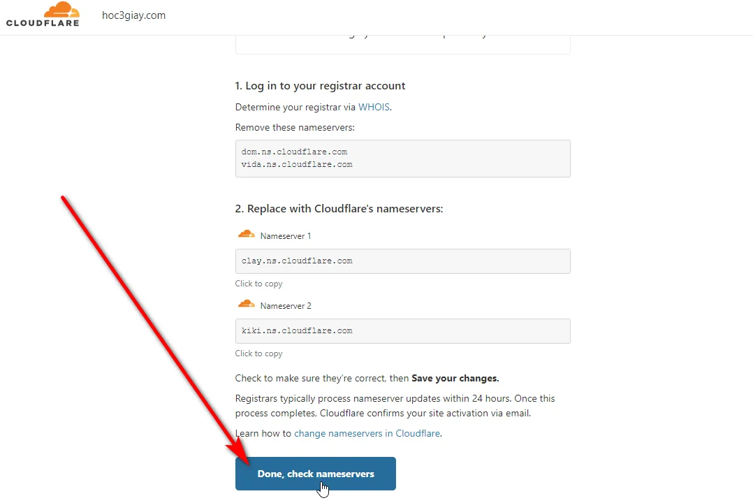 Cuối cùng bạn nhấn nút Done check namesevers.