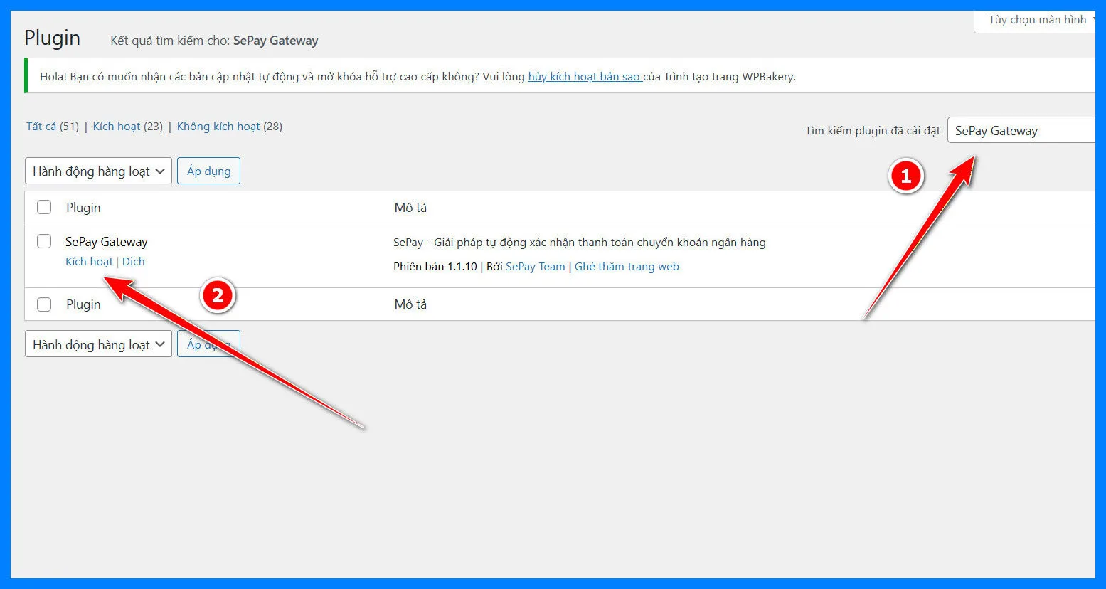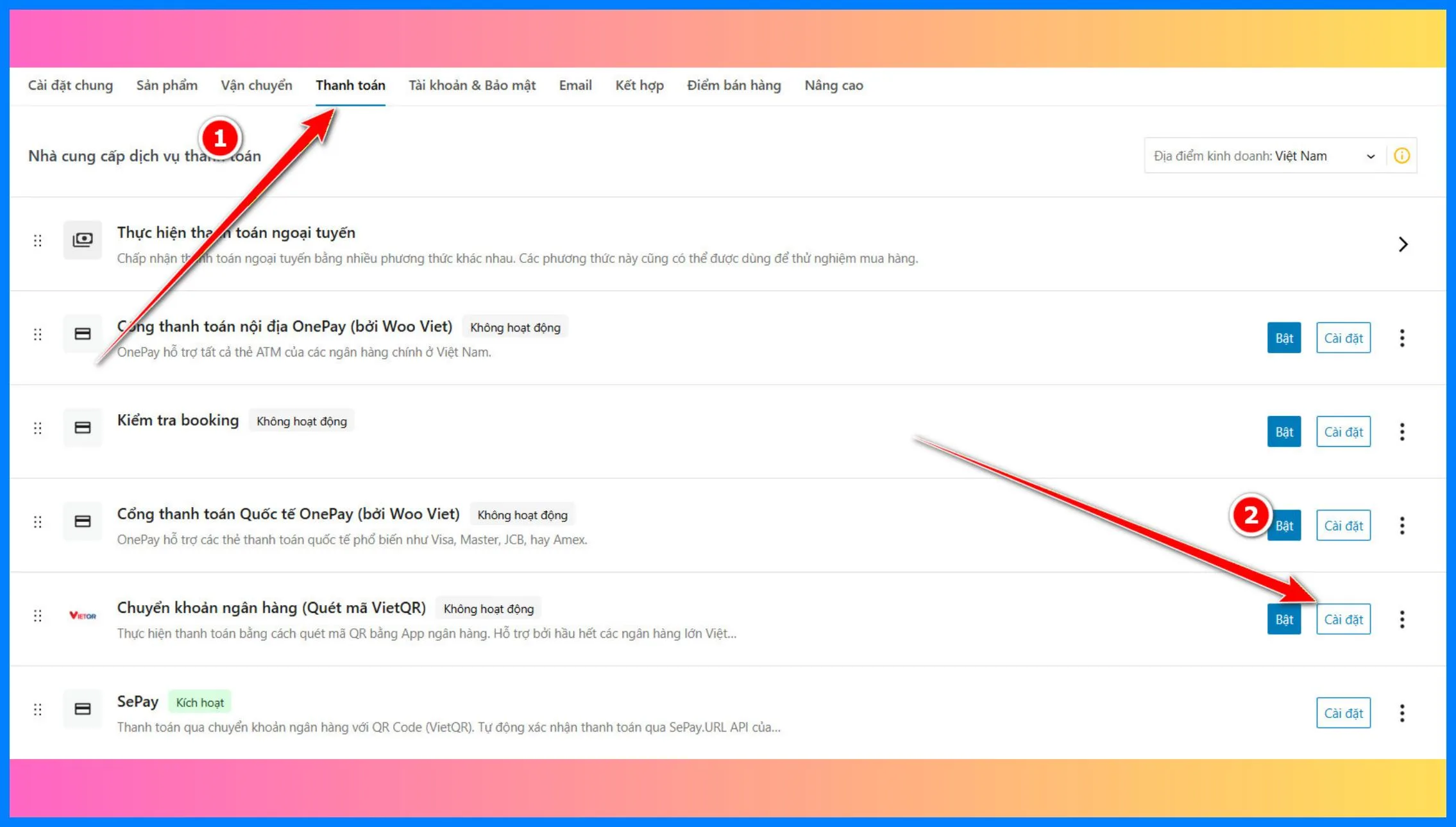 Bước 1: Kích hoạt plugin VietQR hoặc SePay Gateway