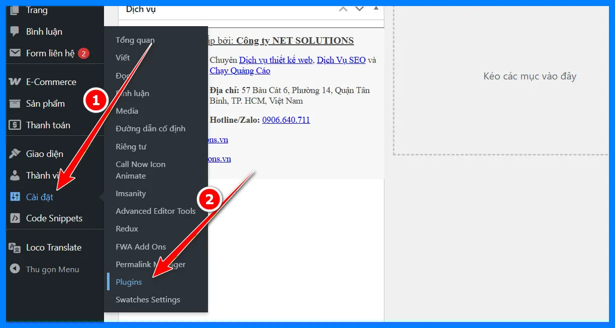 Bước 1: Vào quảng trị web > Cài đặt > Plugins.