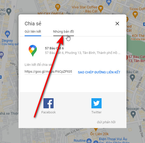 Bước 4: Hộp thoại Chia sẻ được bật lên, tại trong hộp thoại. Bạn hãy nhấn vào Tab Nhúng bản đồ.