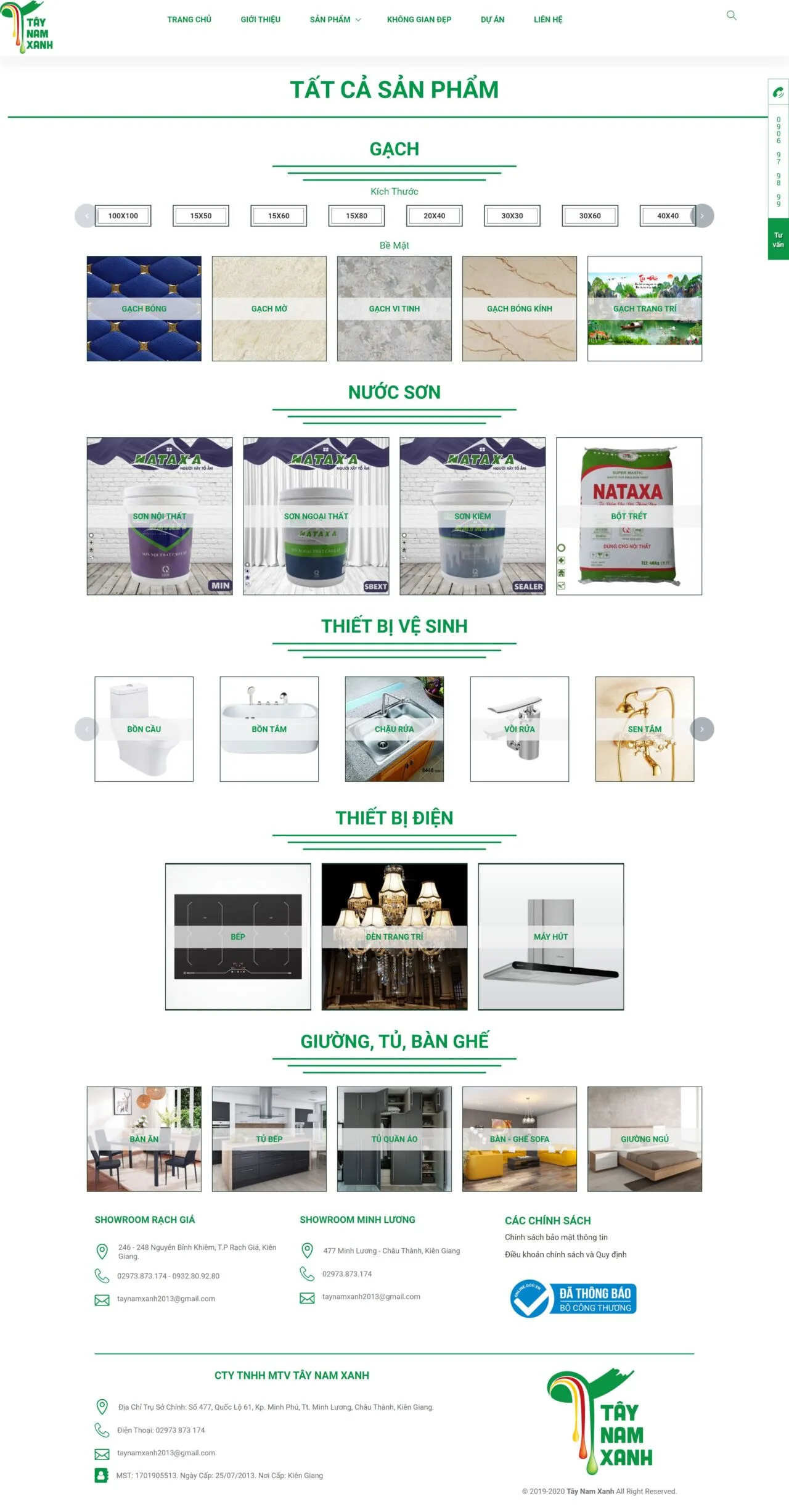 - Trang giới thiệu: giới thiệu các showroom của công ty nội thất Tây Nam Xanh, với các địa chị liên hệ và hình ảnh showroom 360 độ.